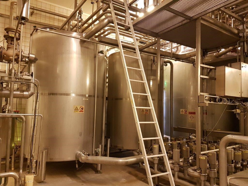 Complete CIP-set bestaande uit: loog tank 21 m3, zuur tank 21 m3, spoelwatertank 10 m3, vers water tank 10 m3, 7 lussen (4 lussen 3″ en 3 lussen 4″), 2 verdeelleidingen